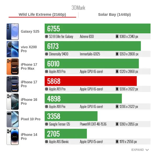 3DMark: 5868 (Wild Life Extreme) |