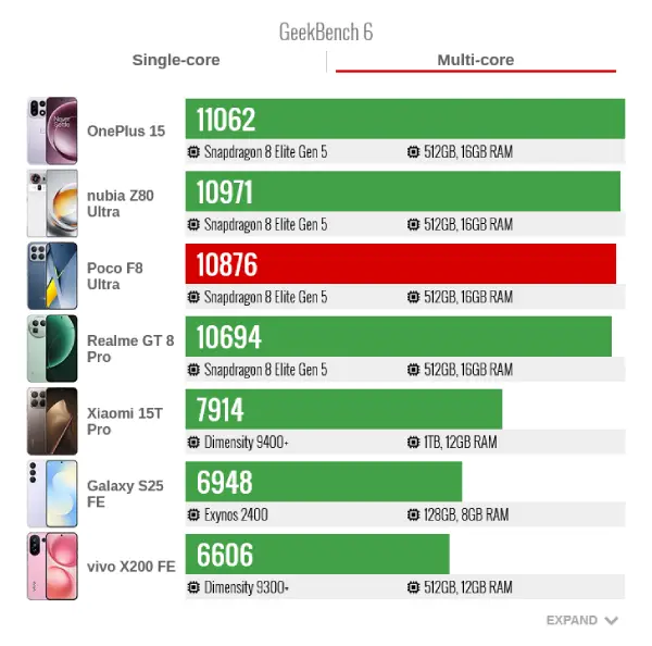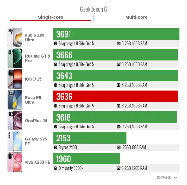 آرزوهای دوربین‌محور آن به نتایج قابل توجه در دنیای واقعی تبدیل نمی‌شود، اما دارای صفحه‌نمایش بزرگی است و نسخه پایه آن می‌تواند کمتر از F8 Ultra (یا حداقل با قیمت اولیه آن مطابقت داشته باشد) به دست آید؛ اگر به دنبال یک Snapdragon 8 Elite Gen 5 ارزان هستید، nubia حداقل به خوبی Poco این نیاز را برآورده می‌کند.